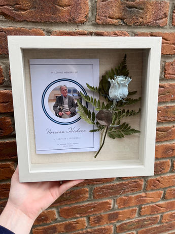 Our skilled artisans delicately dry each flower, capturing the essence of your sympathy flowers in their most graceful state. We then artfully arrange and frame them in a way that reflects the unique style and vision of your original fresh flowers. The result is a stunning keepsake that will remind you of the solace and support that surrounded you during this difficult time.